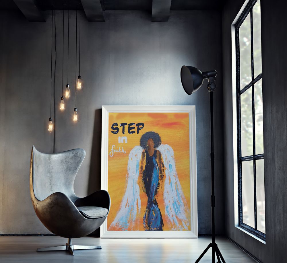 A beautiful illustration of a brown Angel stepping in faith. A beautiful gift that would look amazing framed on any wall. Original artwork by: Nefateri